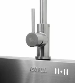 Das Bull Einbau – Spülbecken Größe M wird inkl. Wasserhahn mit Kalt-/Warmwasserranschluss geliefert.