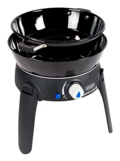 Der tragbare und vielseitige Gasgrill Safari Chef 30 LP mit einem Gewicht unter 4 Kilogramm lässt sich besonders platzsparend zusammenklappen und beinhaltet vier austauschbare Koch- bzw. Grilloberflächen: Topfständer, Grillrost, Grillplatte und Pfanne, die auch als Deckel genutzt werden kann.
