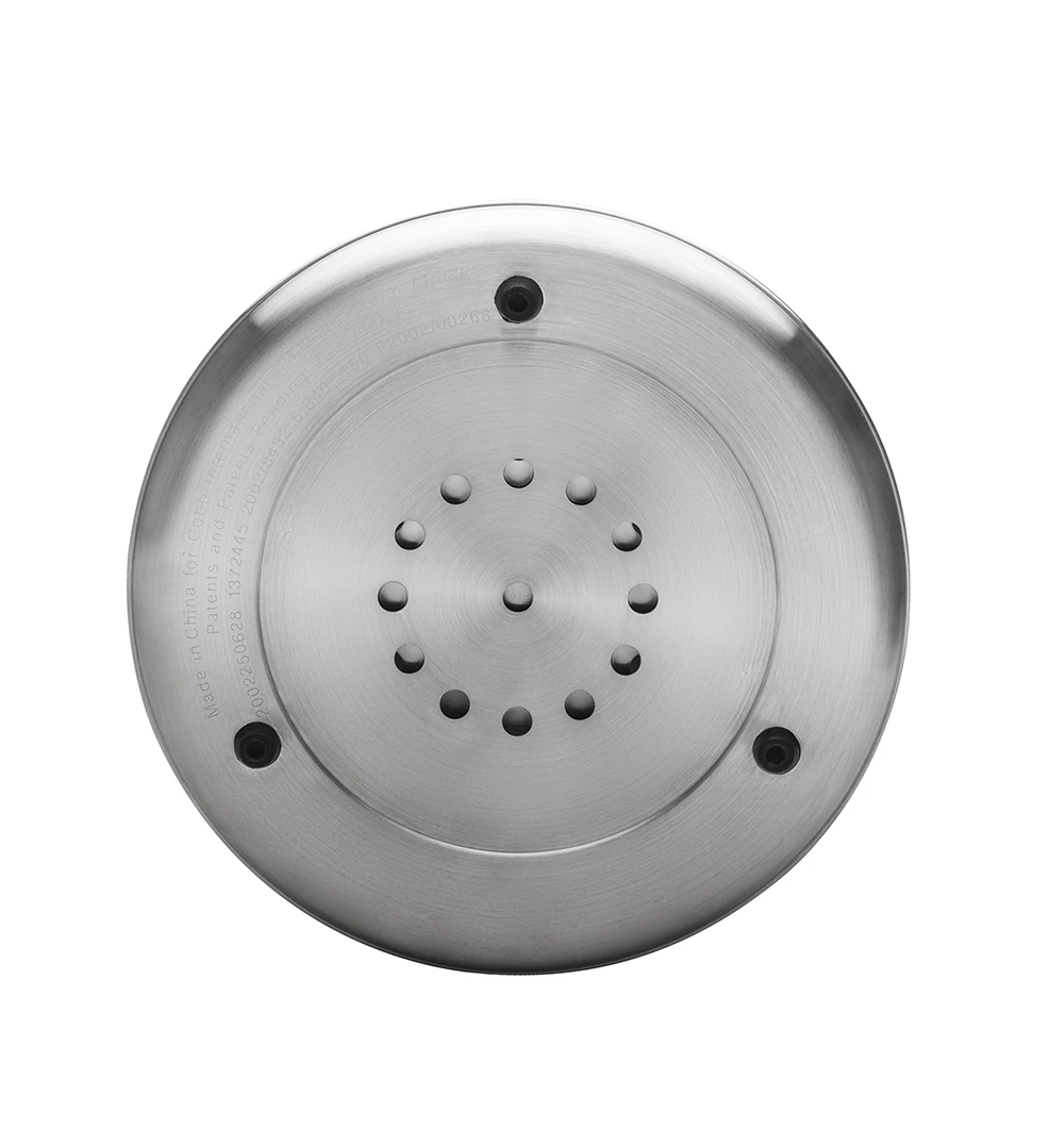 Der Deckel des Cobb PREMIER AIR DELUXE verspricht durch eine spezielle Luftregulierung eine einfache und präzise Temperatursteuerung. Mithilfe einer Drehscheibe lassen sich über den Griff am Deckel die Lüftungsschlitze öffnen und schließen, um so die Temperatur optimal zu regulieren.