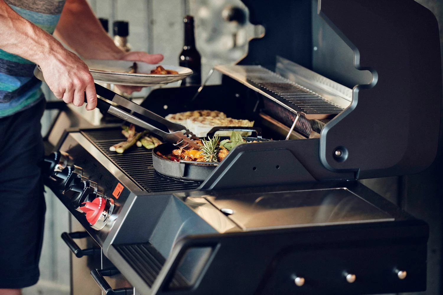 Die große Grillfläche besitzt einen emaillierten Gusseisenrost für eine optimale Hitzeverteilung auf der Grillfläche und intensive Brandings. Der Grillrost gehört zum Grillrostsystem Switch Grid und bietet zusätzlich die Möglichkeit verschiedene optional erhältliche Einsätze, wie z.B. ein Pizzastein, Dutch Oven oder eine Pfanne, in den Grillrost einzulegen.