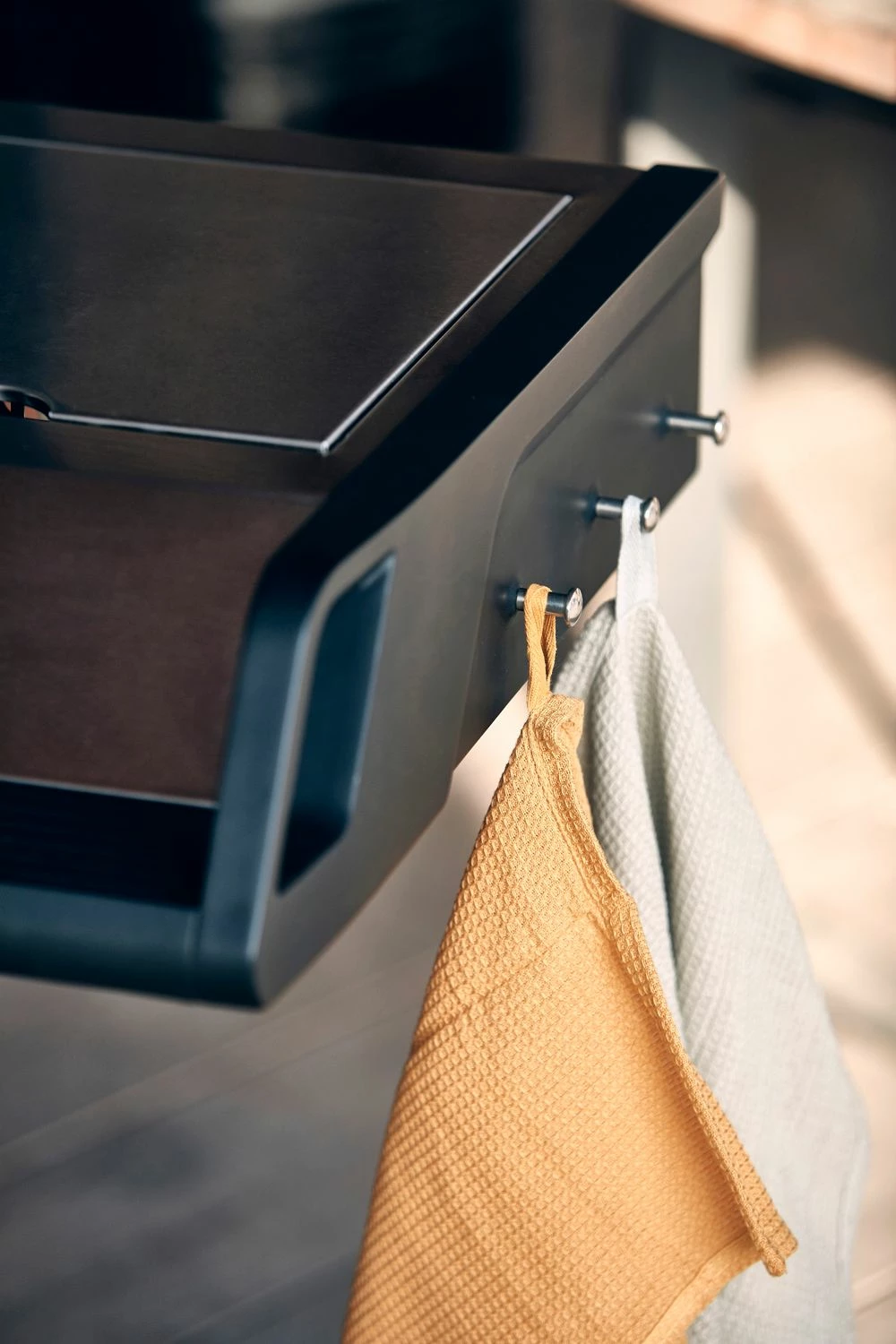 Neben Seitenkocher und Abstellfläche bieten die beiden Seitenablagen zusätzlich noch praktische Ablageflächen sowie seitliche Besteckhaken für Grillbesteck und das Geschirrtuch.