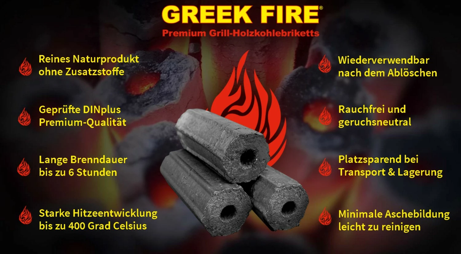 Wenn Sie also hochwertige Grillbriketts fĂĽr Long-Jobs oder ĂĽberhaupt zum Grillen suchen, dann ist Greek Fire garantiert eine gute Wahl.