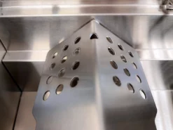 Besonderen Wert haben wir auch hier auf die Verarbeitung und das verwendete Material gelegt. Der mobile Gasgrill besitzt daher fĂĽr alle gängigen VerschleiĂźteile eine Edelstahl-AusfĂĽhrung um eine lange Haltbarkeit zu erzielen. Die Edelstahl-Stabbrenner besitzen massive 1,3mm starke Edelstahl – Flammenschutzbleche. Das Fettauffangsystem besteht aus einer fest arretierten Edelstahlabdeckung im Inneren des Garraums und einer darunter sitzenden, nach vorn herausziehbaren Edelstahl – Fettauffangwanne.