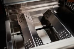 Ausgestattet mit extrem leistungsstarken Edelstahlbrennern schafft der kleine G201E bei geschlossenem Deckel eine Maximaltemperatur direkt am Grillrost von bis zu 350°C. Damit zaubern Sie krosse Brandings für köstliche Röstaromen.