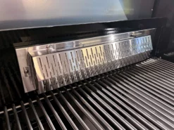 Darüber hinaus haben wir insbesondere an die normalerweise ersten Verschleißteile, die Flammenschutzbleche, gedacht! Hier werden oft emaillierte Stahlbleche verwendet oder einfach zu dünnes Material. Die Fettabweiser bzw. Flammenschutzbleche bei unseren Gasgrills sind daher aus 1,3 mm starkem Edelstahl gefertigt. Damit erzielen wir eine möglichst lange Lebensdauer und somit einen glücklichen Grillmeister für viele Jahre.
