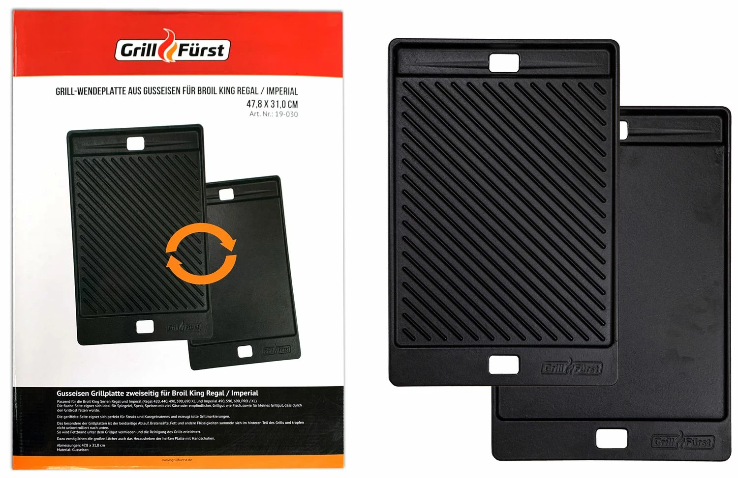 | Bezeichnung | Grillfürst Grillplatte Gusseisen für Imperial / Regal 48 x 31 cm |