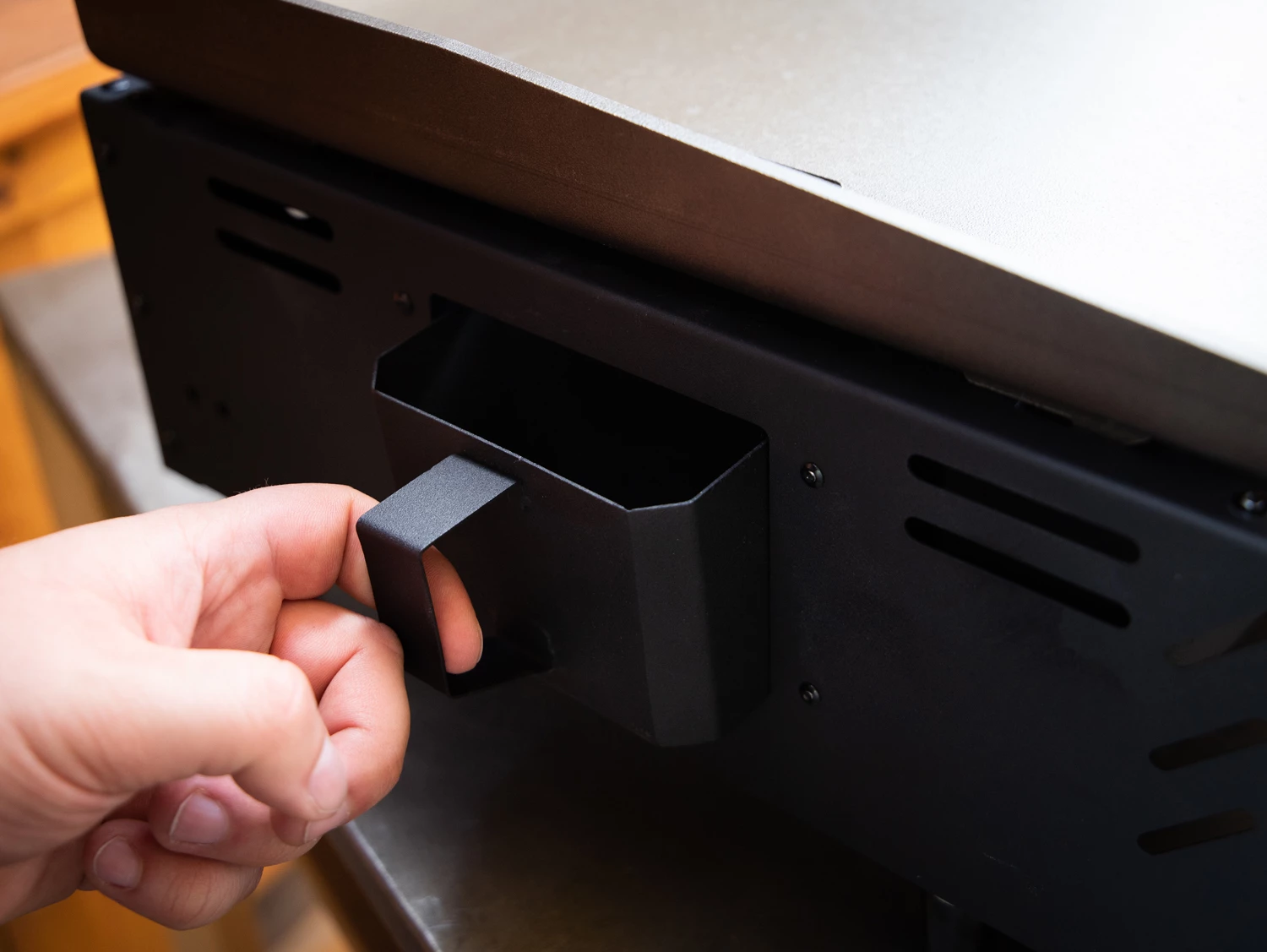 - groĂźer Fettauffangbehälter – seitlich entnehmbar