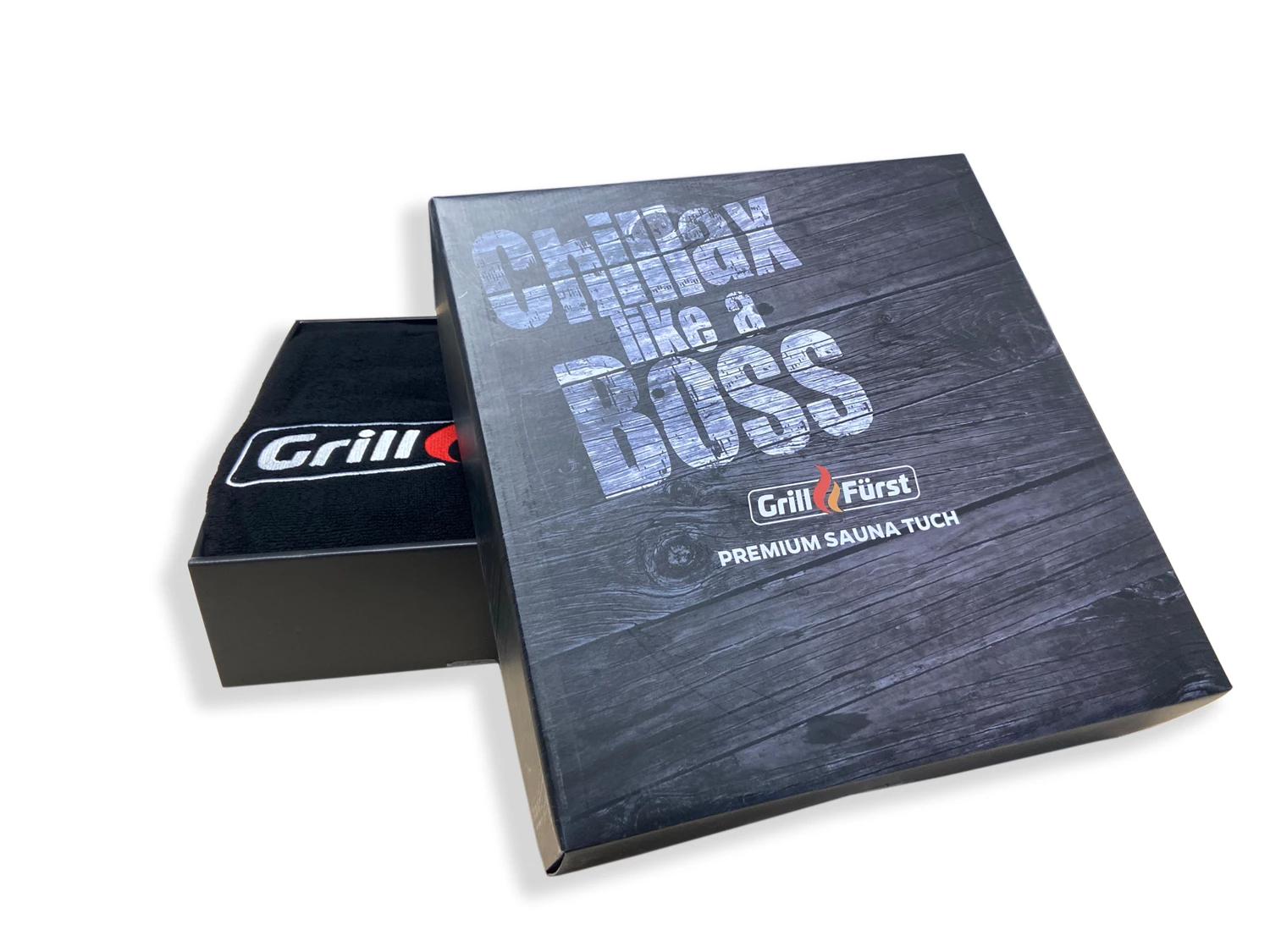 1 x Grillfürst Handtuch / Saunatuch XL in Geschenkschachtel
