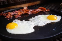 Angefangen bei Spiegelei und Speck über das Braten von Pfannkuchen bis hin zu Fisch und Meeresfrüchten oder dem Garen von Gemüse: hier ist die flache Seite der Grillplatte unverzichtbar.