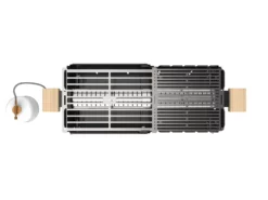 Der Knister Grill kann im zusammengeschobenen Zustand mit einem Grillrost betrieben werden, oder auf voller Breite mit beiden Grillrosten. Für maximale Flexibilität lässt sich der kleinere Grillrost auch seitlich einschieben. Ideal zum scharfen anbraten von Steaks.