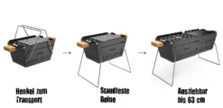 Der Knister Original Grill bietet mit seinen schlanken 4,3 kg Gewicht verschiedene Möglichkeiten für den Transport. Besonders erwähnenswert sind die Multifunktionsbeine, welche gleich 2 Funktionen bieten. Zum einen ermöglichen sie einen sicheren Stand auf nahezu allen Untergründen, auch Kies und Sand und zum anderen sind sie gleichzeitig Tragehenkel, um den Knister praktisch wie einen Korb zu tragen. Alle benötigten Grillutensilien werden einfach in den Knister hineingelegt.