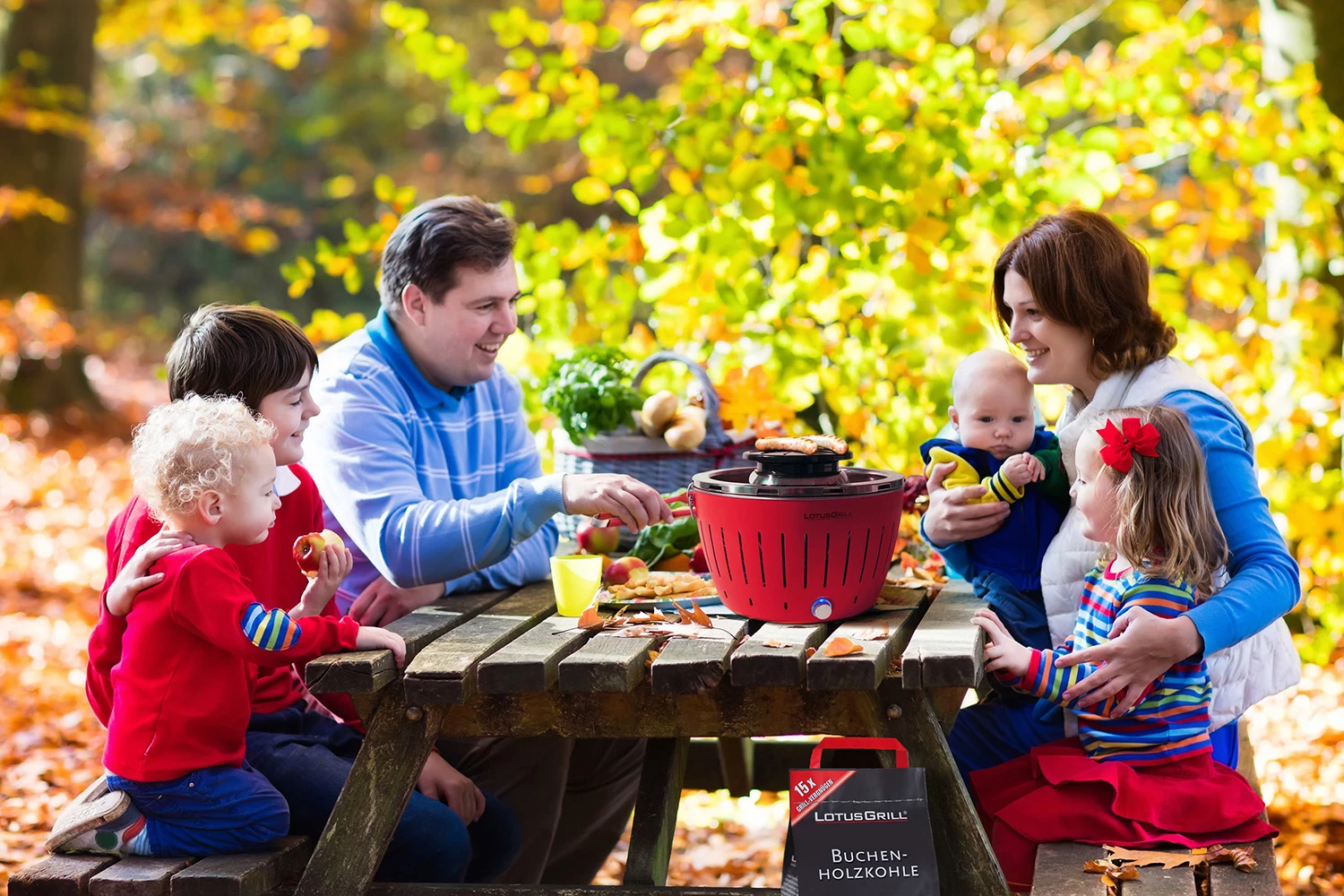 LotusGrill Classic – Holzkohle Tischgrill – Feuerrot Inkl. Tasche