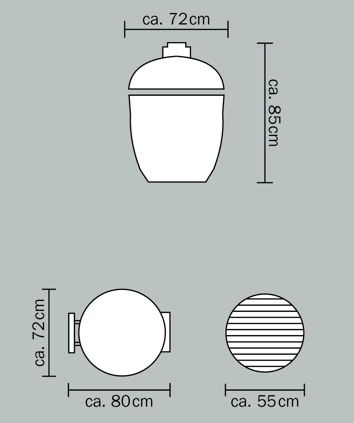 | Durchmesser Grillrost: | ca. 55 cm |