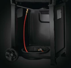 Da die Freestyle Gasgrills keinen Unterschrank mit TĂĽr besitzen, wird die Gasflasche einfach von hinten in die Halterung gehoben und angeschlossen. Durch die Blende an der Vorderseite ist die Gasflasche von vorne nicht mehr zu sehen.