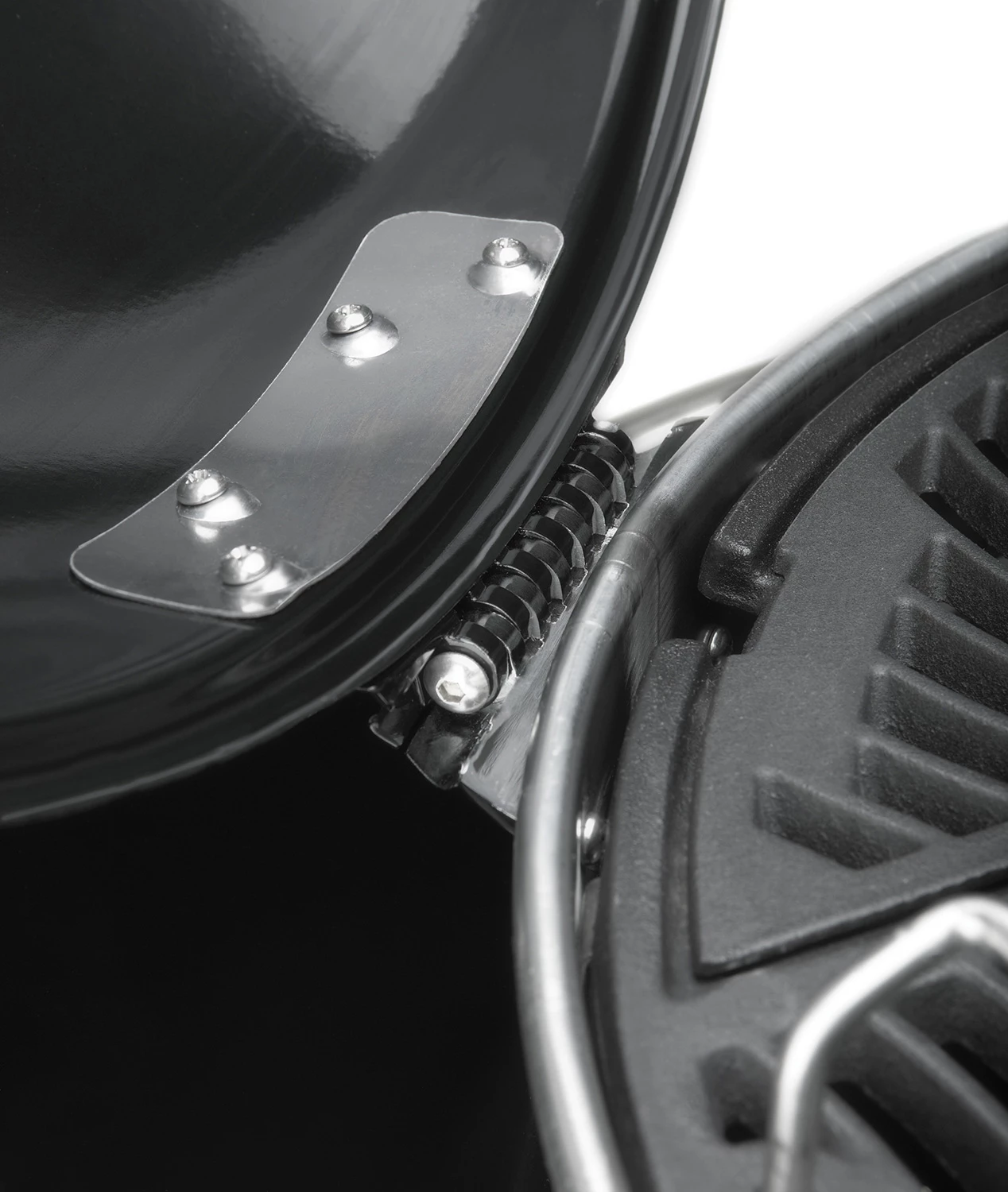 - Deckel mit Eckscharnier für sicheres Hantieren über der Grillfläche