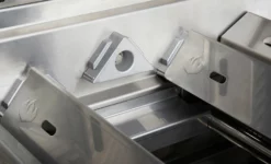 Unter der linken größeren Grillhaube sind die 4 Hauptbrenner aus Edelstahl verbaut. Sie heizen den Grill mit den WAVE Edelstahlrosten richtig ein und erzeugen hervorragende Grillergebnisse. Dazu tragen auch die Flammenschutzbleche einen Großteil bei, denn dank der Bleche wird die Hitze der Brenner optimal im Garraum verteilt.