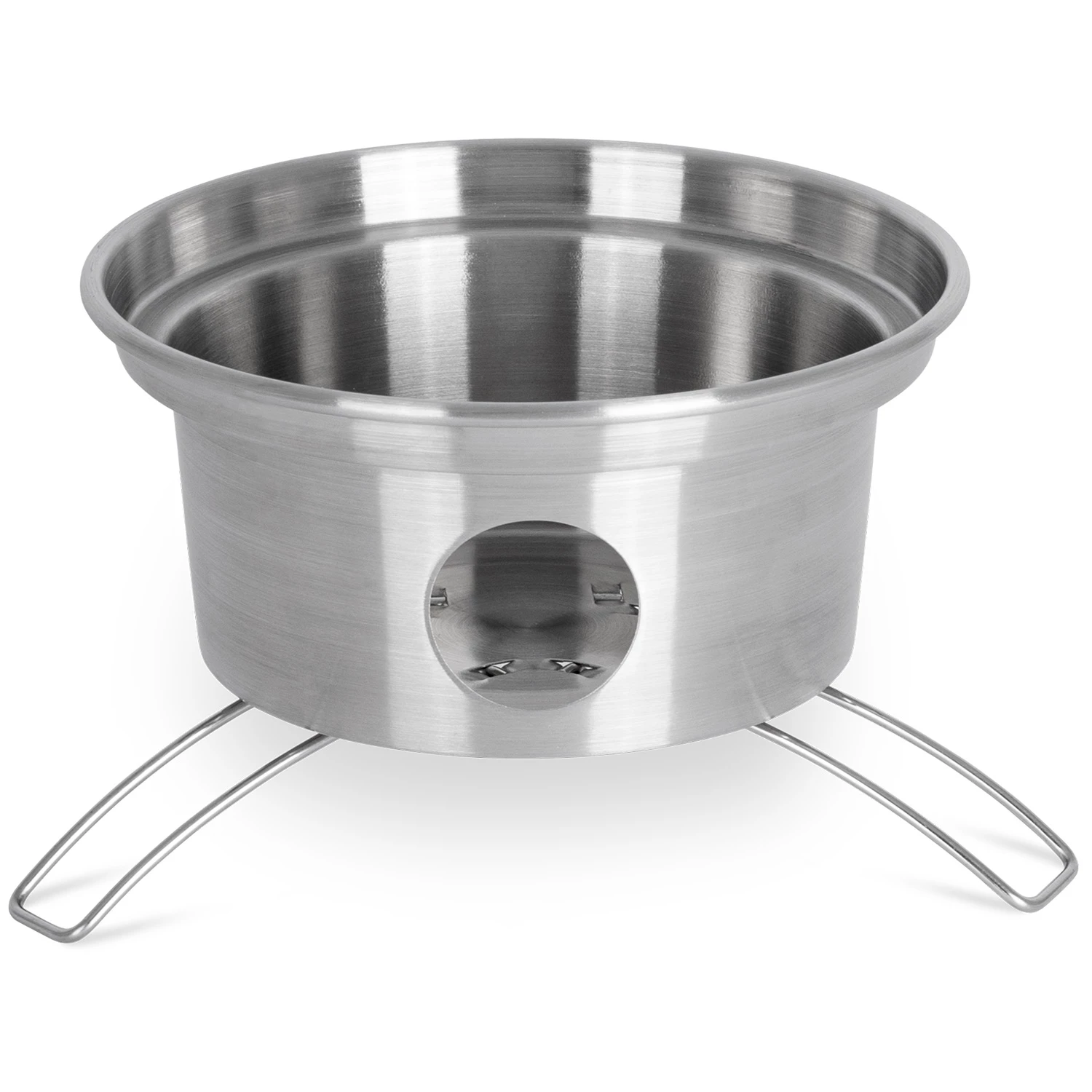Mit dem im Lieferumfang enthaltenen Kochaufsatz können Sie über der oberen Kamin-Öffnung zusätzlich noch ein kleines Gefäß oder einen kleinen Topf platzieren, worin Sie eine Mahlzeit erwärmen können. So nutzen Sie die komplette Wärme des Feuers effektiv aus.