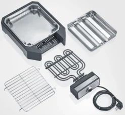 Grillrost, Heizelement und Reflektorschale lassen sich zur Reinigung einfach aus dem Gehäuse entnehmen. Grillrost und Schale sind aus Edelstahl gefertigt und damit auch spülmaschinengeeignet.